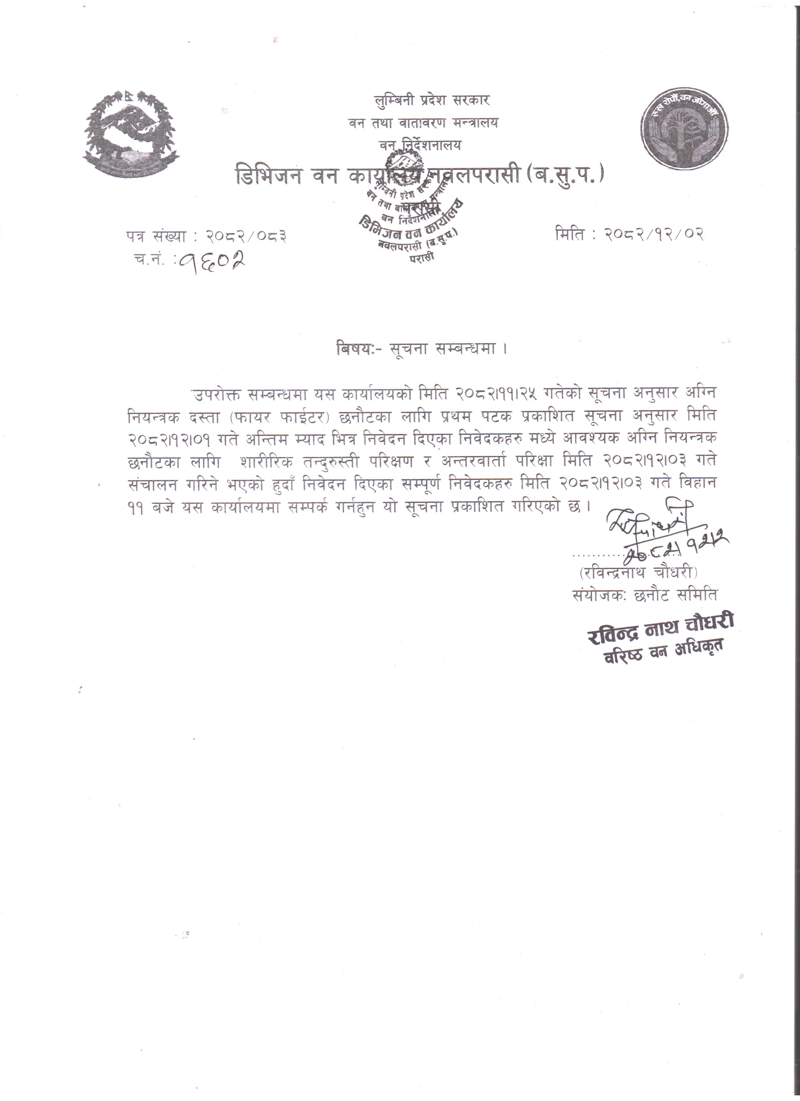 फायर फाईटर छनौट सम्बन्धी सूचना