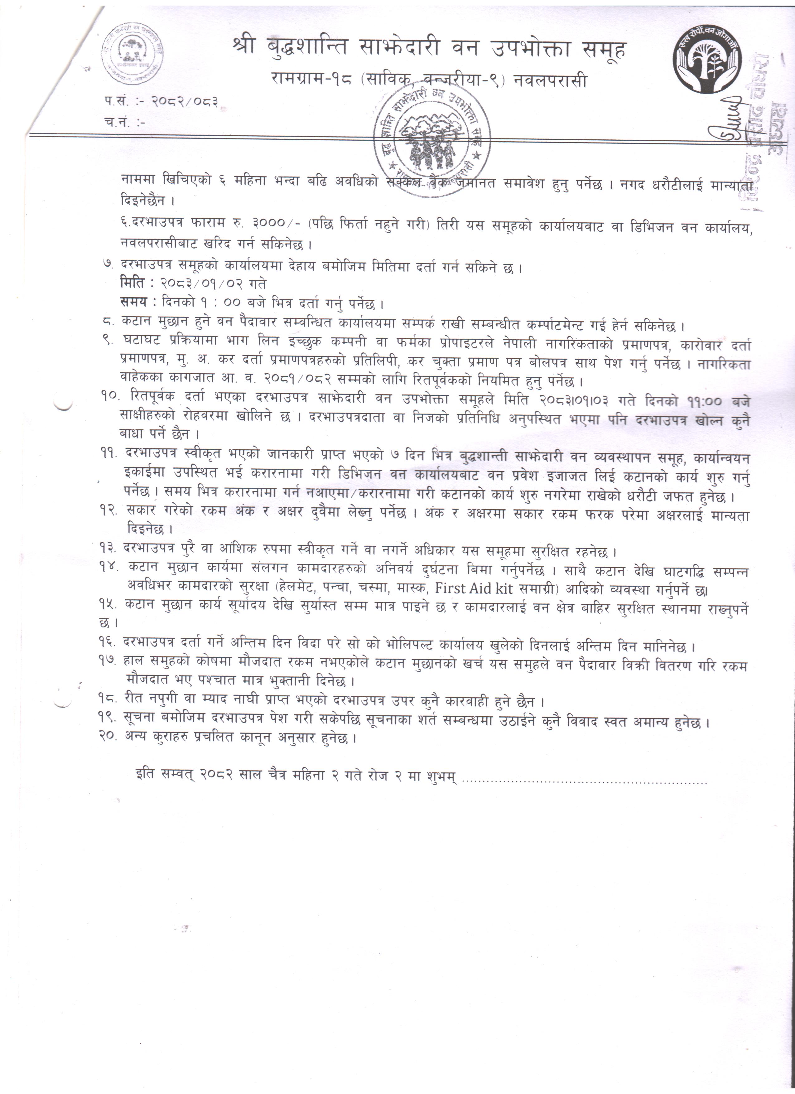 बुद्धशान्ती साझेदारी वनको थिनिङ्ग तथा सुधार कटान सम्बन्धी सूचना