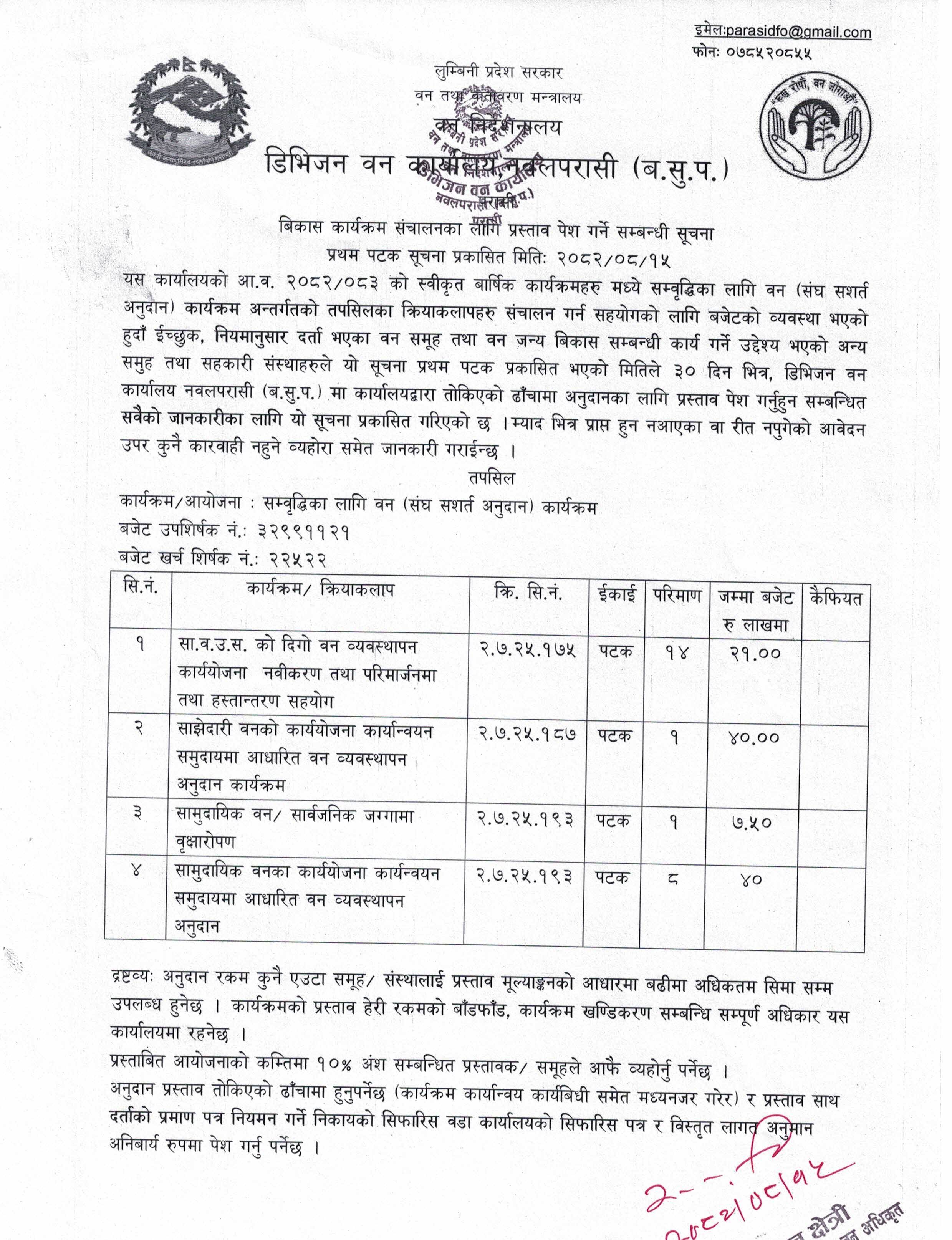 बुद्धशान्ति साझेदारी वन उपभोक्ता समूहबाट उत्पादित प्रदेश सरकार तर्फको काठ दाउरा विक्रि सम्बन्धी दोस्रो पटक प्रकाशित सूचना